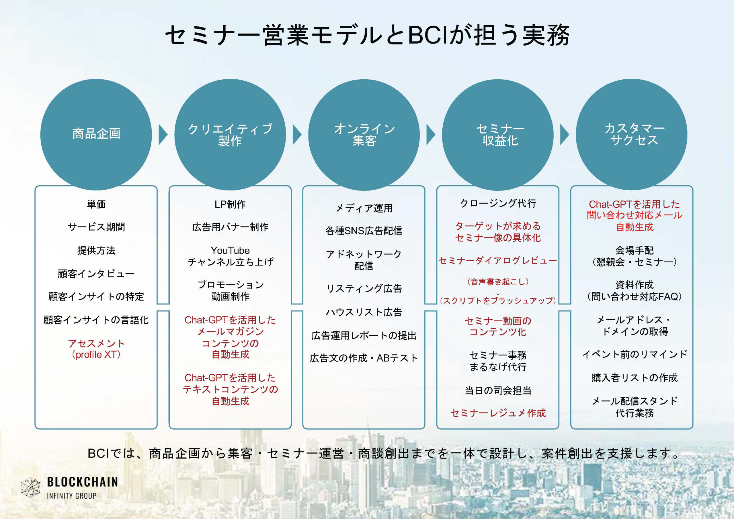 BCI Groupは、セミナーを起点に決裁者との商談機会を創出し、受注までの営業活動を担うBtoB企業向けの案件創出支援を提供しています。